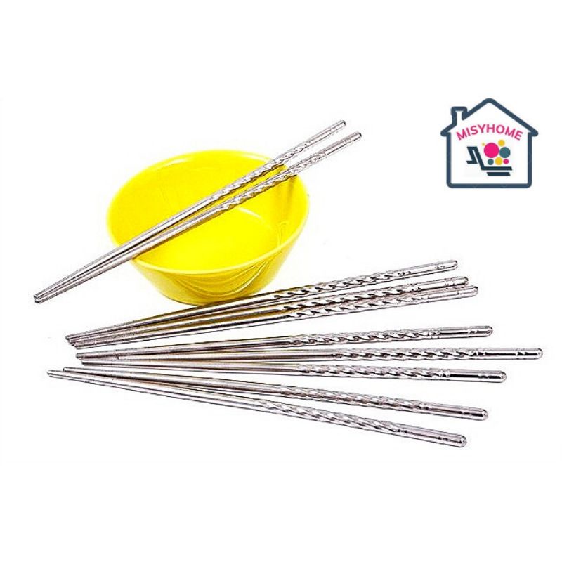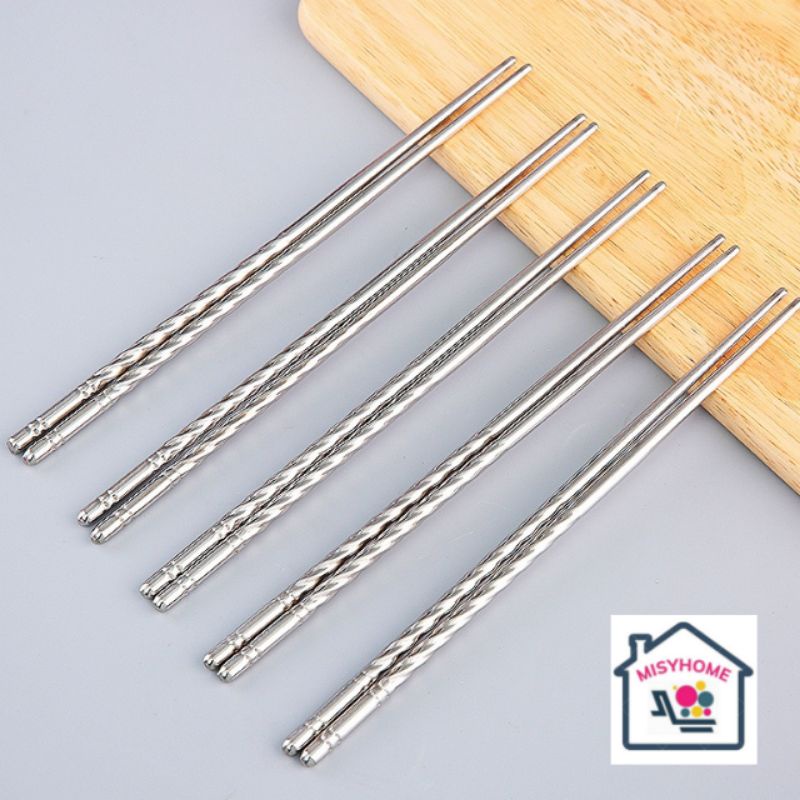 Nhà cửa & Đời sống > Dụng cụ nhà bếp > Cây vét bột & đồ gắp thức ăn || 5 đôi đũa inox xoắn 22cm ăn cơm bóng đẹp cứng cápCòn hàng