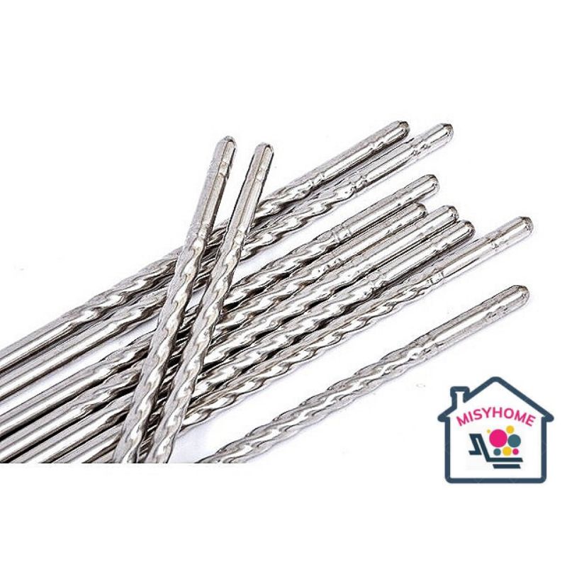 5 đôi đũa inox xoắn 22cm ăn cơm bóng đẹp cứng cáp