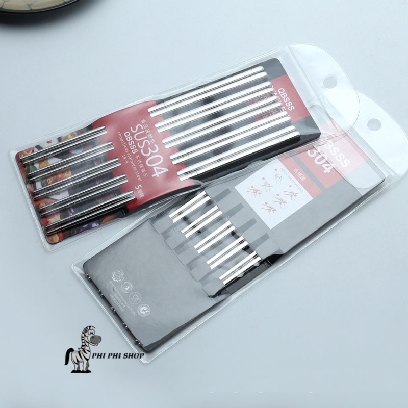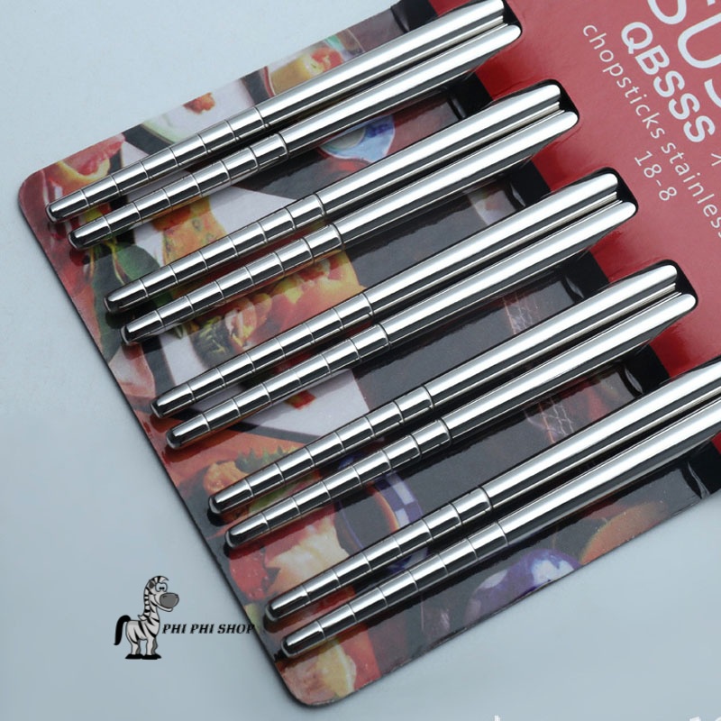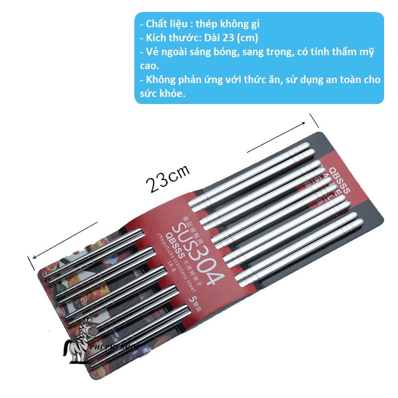 Bộ 5 đũa inox ăn cơm 23cm QBSSS bền đẹp- Màu sắc : Bạc