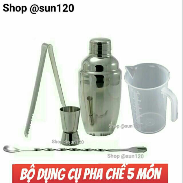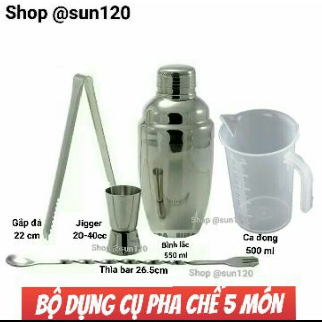 Bộ 5 sản phẩm gồm:- bình lắc inox 550 ml
