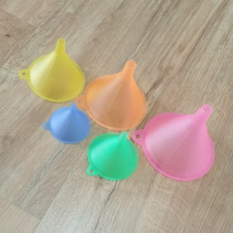 Bộ 5 Dụng Cụ Đong, Sớt Dung Dịch 5 Size - Phễu Nhựa Màu Kẹo