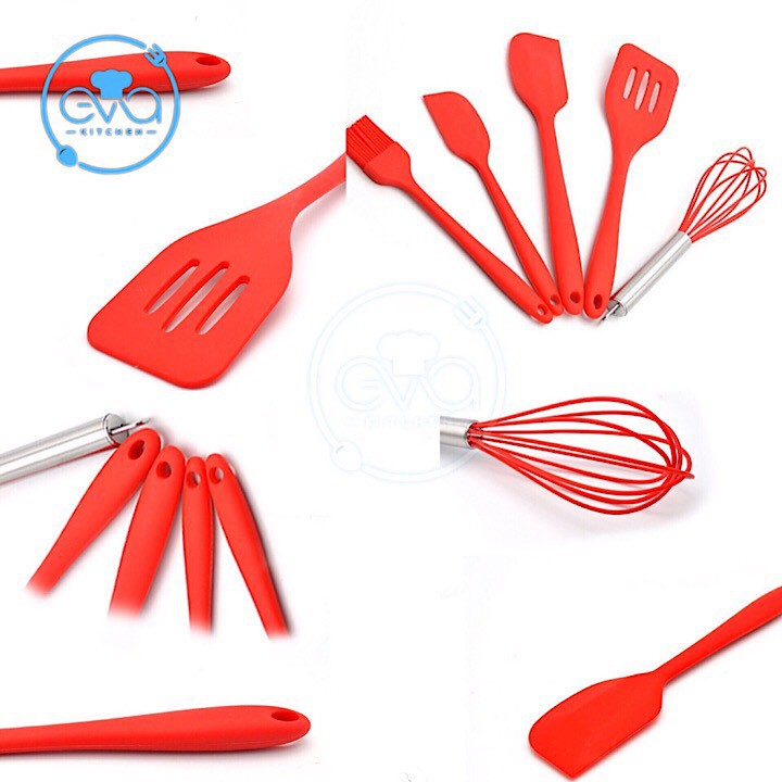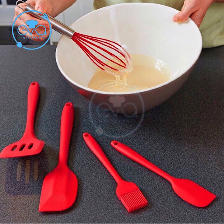 - Bộ 5 dụng cụ cơ bản bếp bánh sử dụng chất liệu silicon cao cấp không gây độc hại, có khả năng chịu nhiệt tốt từ -40℃ - 230℃. Sản phẩm có màu đỏ nổi bật, không làm trầy xước hoặc hư hỏng lớp chống dính của khuôn hay nồi chảo. Chất liệu không bám dính, thao tác đơn giản, linh hoạt.