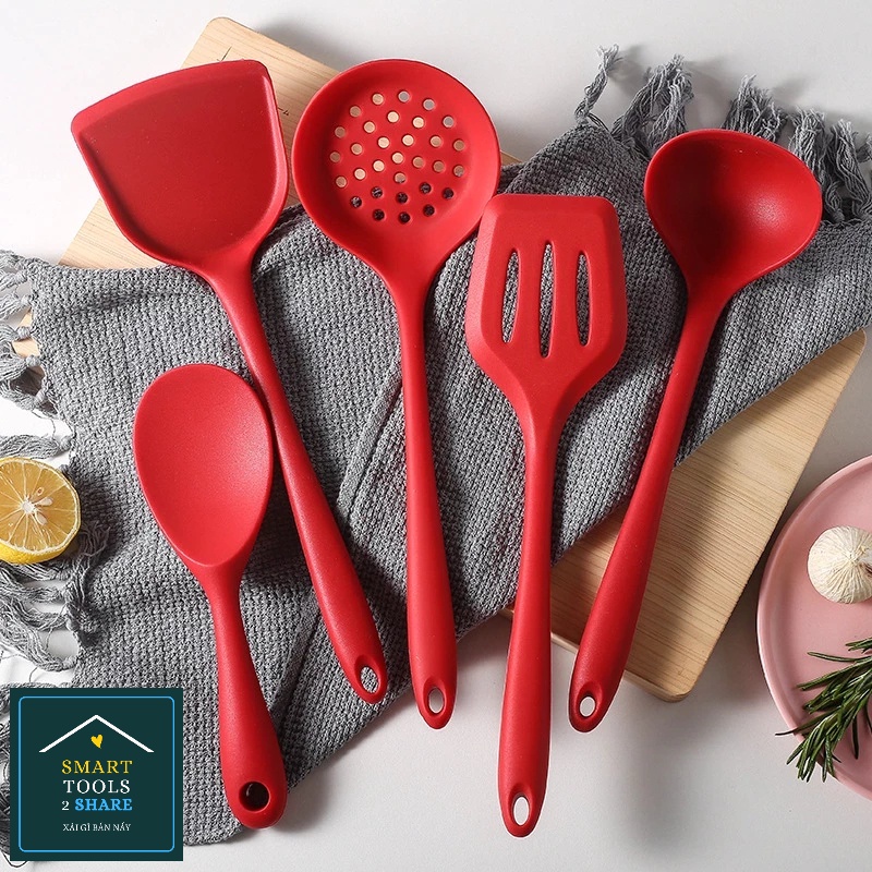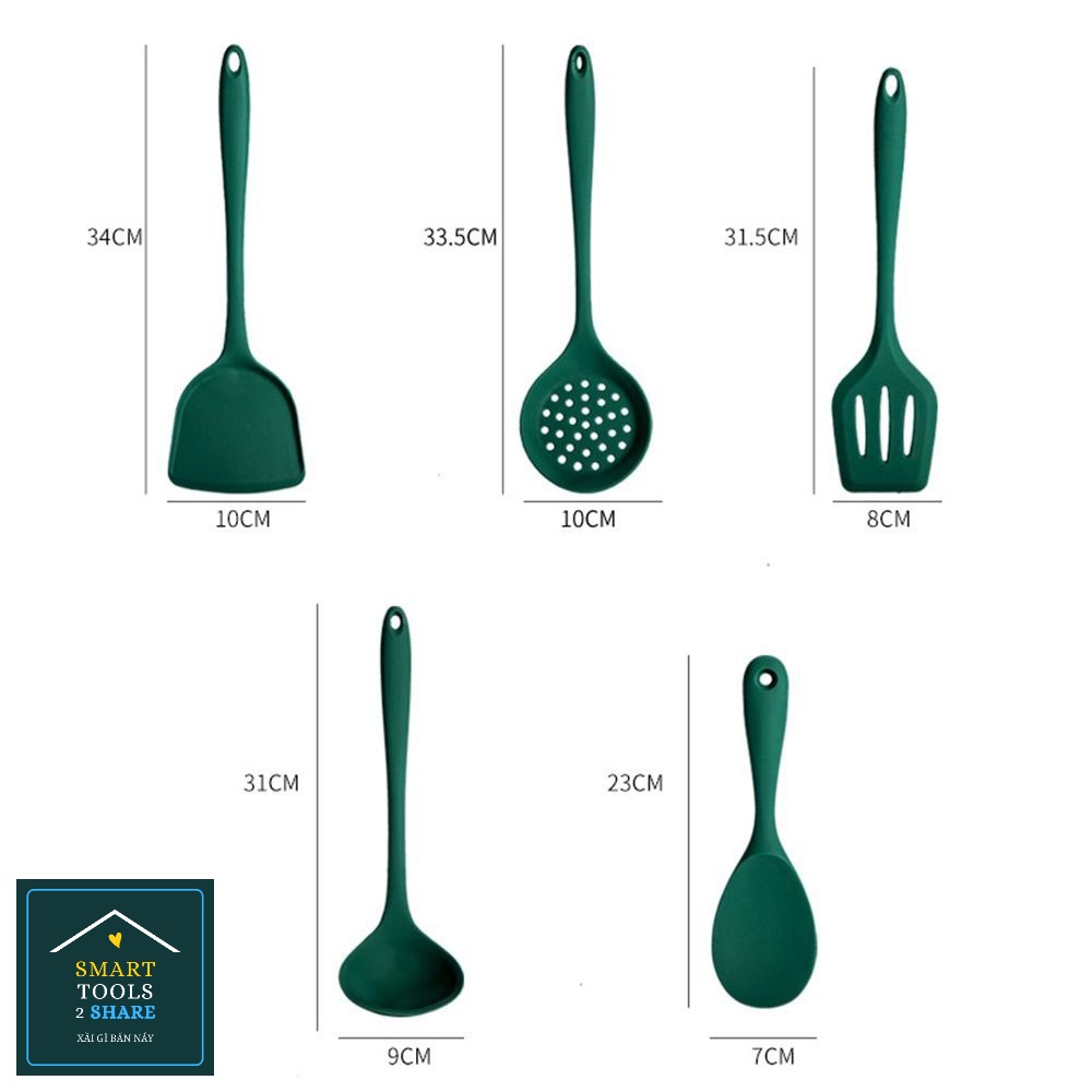 Giới thiệu Bộ 5 Dụng Cụ Nấu Ăn Xẻng/ Thìa/ Muỗng Silicone Thực Phẩm Cao Cấp Chống Dính Chịu Nhiệt An Toàn Sức Khỏe
