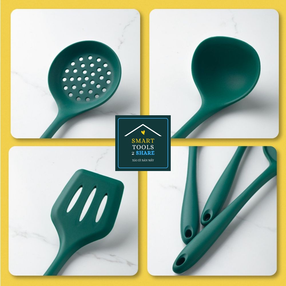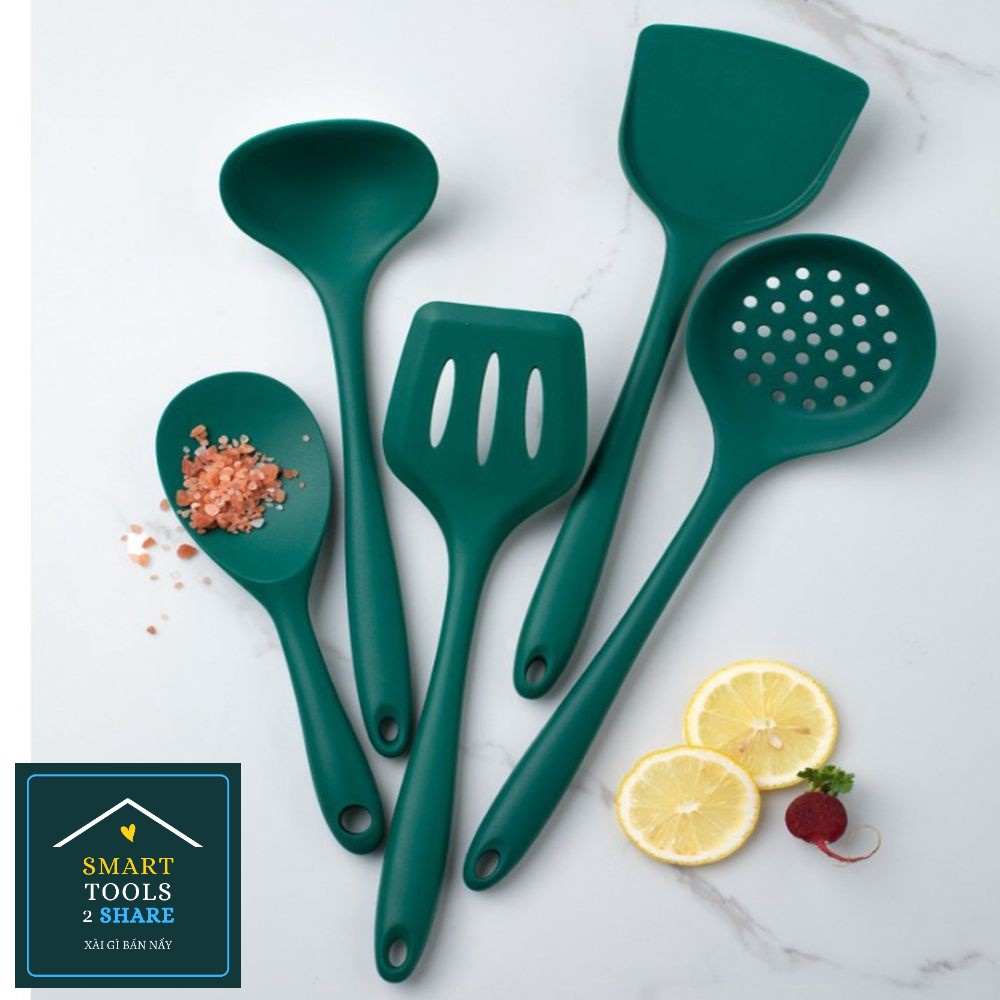 Bộ 5 Dụng Cụ Nấu Ăn Xẻng/ Thìa/ Muỗng Silicone Thực Phẩm Cao Cấp Chống Dính Chịu Nhiệt An Toàn Sức Khỏe