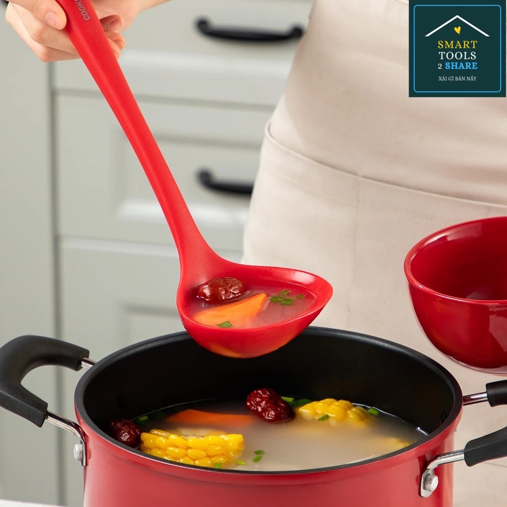 - Dụng cụ silicone khi xào nấu tạo cảm giác cực êm ái và dễ chịu, không làm hỏng lớp chống dính của chảo/ nồi, không gây tiếng ồn.
