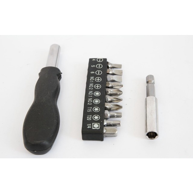 Bộ sản phẩm bao gồm: 01 kìm, 01 bút thử điện, 01 tua vít, 14 đầu tua vít, 6 vít nhỏ - tiện dụng cho việc sửa chữa hệ thống điện, đồ gia dụng… Mũi tua vít làm bằng chất liệu thép không gỉ chịu lực. Tay cầm được làm bằng chất liệu nhựa dẻo thiết kế chống trượt vừa tay cầm.