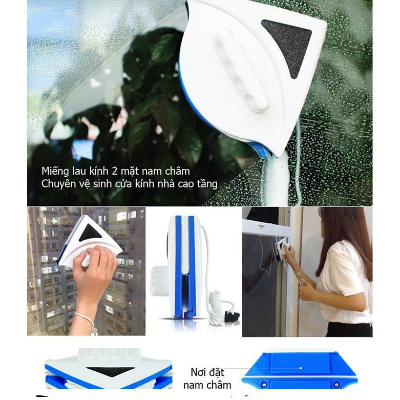 Với thiết kế là dụng cụ chuyên dụng 2 mặt hút nhau bằng nam châm lên chỉ cần di chuyển mặt bên trong thì mặt bên ngoài sẽ tự động di chuyển theo và làm sạch bề mặt kính bên ngoài.