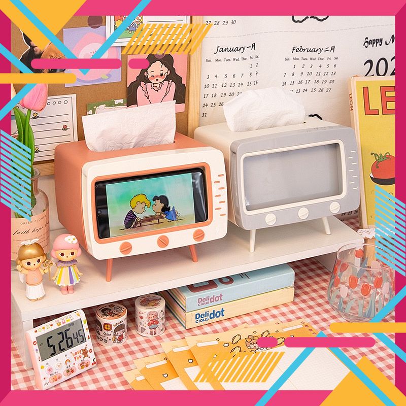 Thiết kế đẹp độc lạ hình dáng như chiếc tivi ngày xưa, mặt trước có chỗ để màn hình điện thoại, bên trong lại là hộp giấy ăn vô cùng tiện dụng, đặt trên bàn ăn mỗi gia đình vừa xem video trên điện thoại vừa rut giấy ăn lau khi cần thiết. Thích hợp cả cho các cô nàng anh chàng yêu phim lãng mạn tình củm cảm động vừa xem phim vừa khóc vừa rut khăn giấy lau nước mắt