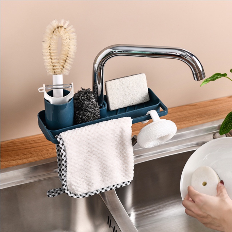 [5❤️][FREESHIP] KỆ NHỰA GẮN VÒI NƯỚC ĐỰNG VẬT DỤNG CÓ TREO KHĂN (24.5x10.2cm) [HCM]
