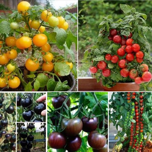 Giới thiệu Bộ 5 gói cà chua các loại( lùn vàng + lùn đỏ + cà chua đen + bi dây đỏ + cà chúa socola )- Kèm gói kích mầm hạt