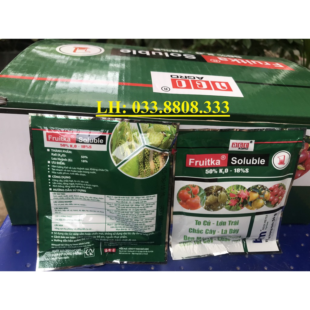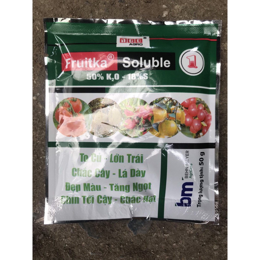 - Phân Bón lá Fruitka chứa 50% kali hòa tan cho cây trồng dễ hấp thụ