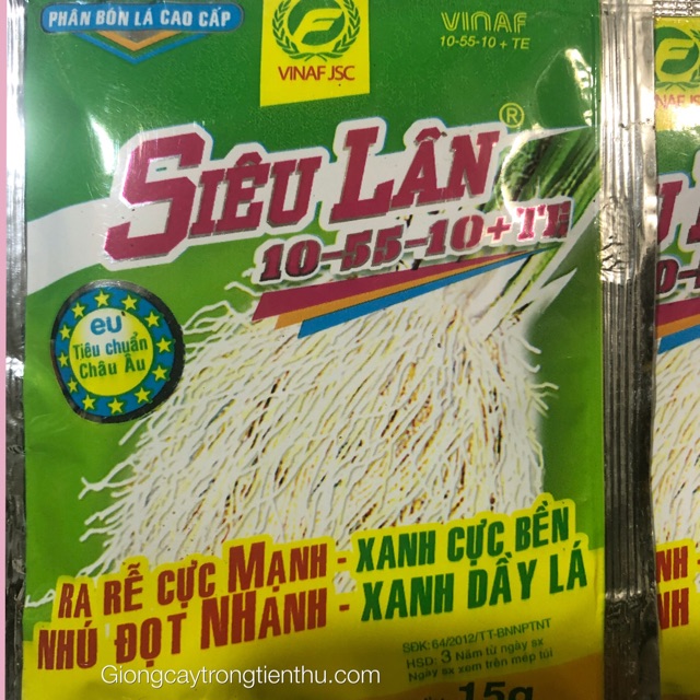 5 GÓI PHÂN BÓN LÁ CAO CẤP SIÊU LÂN (10-55-10+TE)Khối lượng tịnh: 15gr/gói