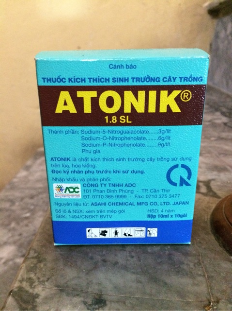 – Thuốc kích thích sinh trưởng cây trồng Atonik 1.8 SL 10ml là sản phẩm được hãng hóa chất Asahi Nhật Bản sản xuất. Nên dùng từ 150ml đến 200ml cho diện tích cấy 1ha. Nên sử dụng đồ bảo vệ toàn thân và vệ sinh cá nhân sạch sẽ ngay sau khi phun để tránh thuốc bám dính trên da, trang phục.