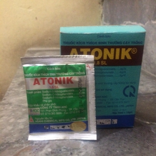 - Atonik 1,8SL 5 gói– Là sản phẩm kích thích sự nẩy mầm và ra rễ, phá vỡ trạng thái ngủ nghỉ của hạt giống. Làm cho cây phát triển khỏe mạnh, phục hồi nhanh chóng sau khi cấy. Atonik là thuốc kích thích sinh trưởng cây trồng thế hệ mới. Cũng như các loại vitamin, Atonik làm tăng khả năng sinh trưởng đồng thời giúp cây trồng tránh khỏi những ảnh hưởng xấu do những điều kiện sinh trưởng không thuận lợi gây ra.