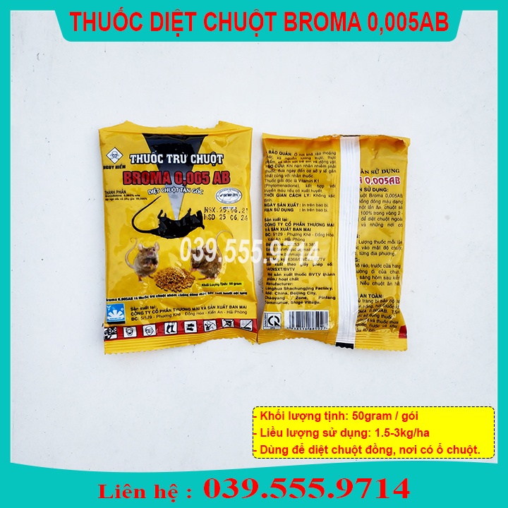 5 GÓI THÓC CHUỘT BROMA 0,005 AB - DIỆT CHUỘT TẬN GỐC