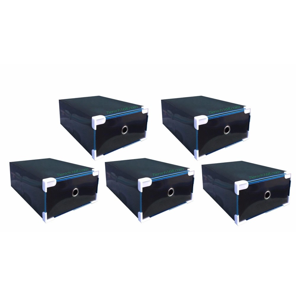 Nhà cửa & Đời sống > Sắp xếp nhà cửa > Kệ giày, hộp giày || Bộ 5 hộp đựng giầy có ngăn kéo viền kim loại Đen TI748Còn hàng