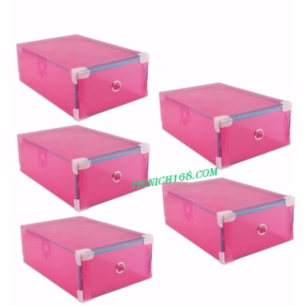 Nhà cửa & Đời sống > Sắp xếp nhà cửa > Kệ giày, hộp giày || Bộ 5 Hộp Đựng Giày Trong Suốt Có Ngăn Kéo Viền Kim Loại TI737 (Mầu Hồng)Còn hàng