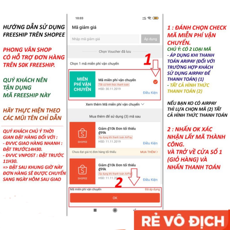 Lưu ý : Tổng giá trị đơn hàng lớn hơn hoặc bằng 250k(ngoại tỉnh) và 150k(nội tỉnh) sẽ được hệ thống hỗ trợ miễn phí vận chuyển (hỗ trợ tối đa 30K 40k). Quý khách hàng chú ý để tận dụng miễn phí vận chuyển của hệ thống nhé.