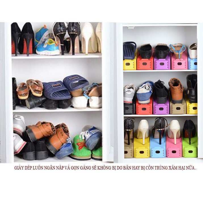 Bộ 5 Kệ Sắp Xếp Giày Dép Tiết Kiệm Không Gian Tủ Nhiều Màu thiết kế thông minh, bạn có thể xếp chồng các đôi giày, dép lại với nhau để tiết kiệm diện tích mà không làm hỏng form giày, dép.