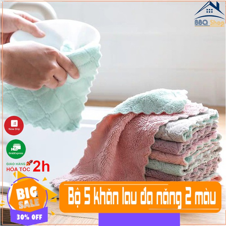 Nhà cửa & Đời sống > Dụng cụ chăm sóc nhà cửa > Khăn vệ sinh || Bộ 5 khăn lau đa năng 2 màu lau bát chén mềm mịnCòn hàng
