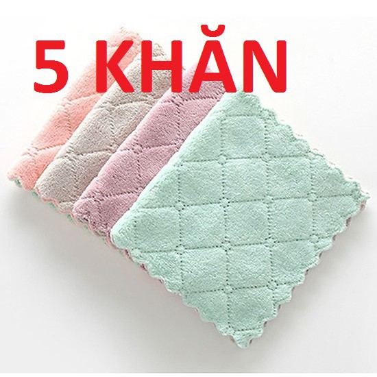 (Bộ 5 ) Khăn lau hai mặt đa năng siêu thấm (24cm x 14cm)