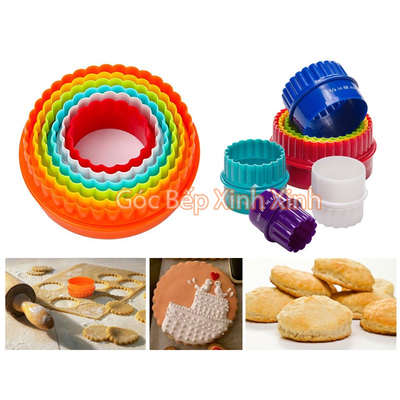 Giới thiệu Bộ 5 khuôn cutter nhựa hình tròn / hình tim / hình sao / hình vuông / hình hoa làm há cảo, bánh xếp, pateso, bánh quy