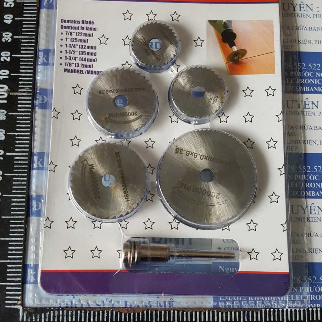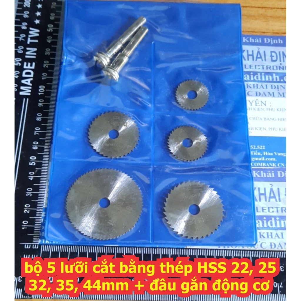 bộ 5 lưỡi cắt bằng thép HSS 22, 25, 32, 35, 44mm + đầu gắn động cơ trục 3.2mm / 6mm kde3671