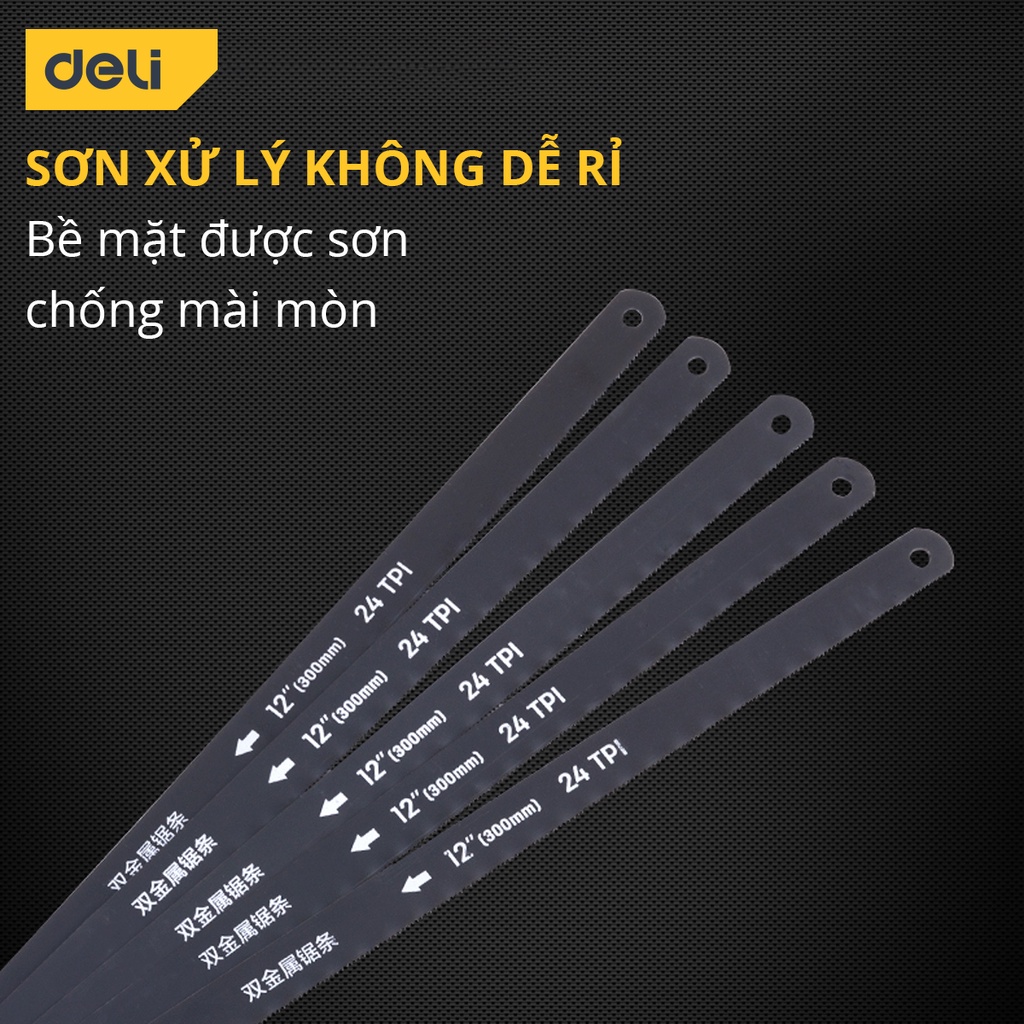 Bộ 5 Lưỡi Cưa Deli Cao Cấp Chính Hãng 12inch 24TPI Chất Lượng Cao - Siêu Bền, Sắc Bén, Chất Liệu Thép Không Gỉ - DL4673