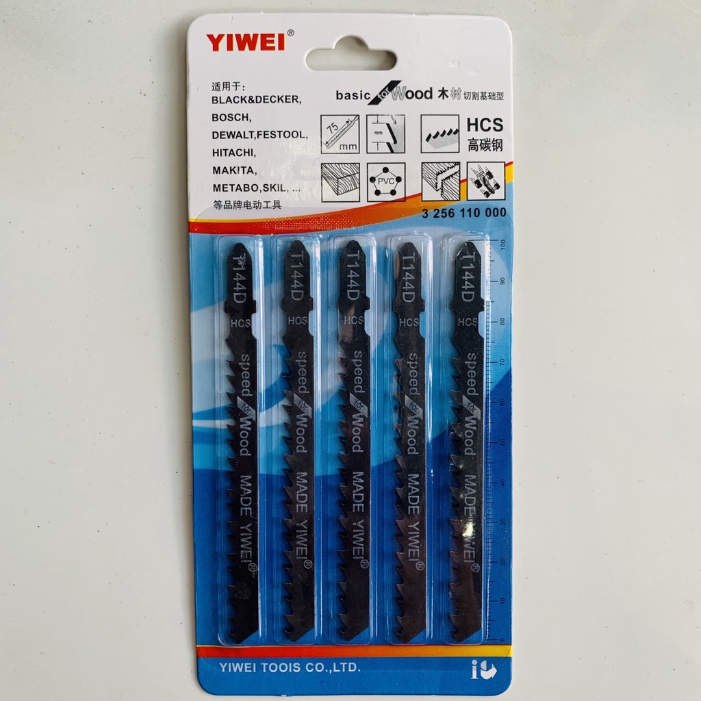 - YIWEI T144D: cắt gỗ nhanh, cắt thẳng. Dài tổng 100mm, phần lưỡi cưa 75mm,khoảng răng 4mm, cắt dày 50mm