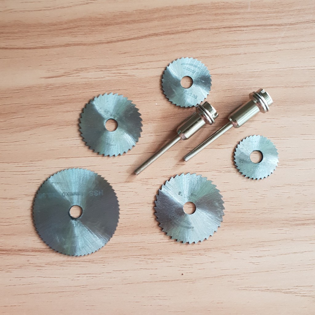 Bộ 5 lưỡi cưa đường kính 2.2cm, 2.5cm, 3.2m, 3.5cm, 4.4cm. Cán 3.17mm.