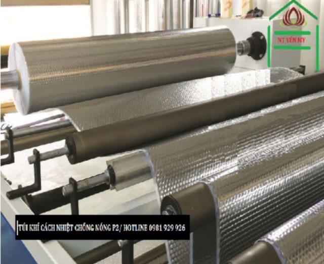 Túi Khí Cách Nhiệt được cấu tạo bởi lớp màng bạc , bề mặt được xử lý Oxy hoá phủ lên tấm nhựa tổng hợp Polyethylen chứa túi khí. Đặc tính phản xạ của lớp màng nhôm cao cộng với độ dẫn nhiệt của lớp túi khí thấp đã tạo khả năng cách nhiệt cách âm ưu việt cho sản phẩm này. Tấm túi khí cách nhiệt được sử dụng chủ yếu trong ngành Xây dựng Công nghiệp và Dân dụng, chống nóng mái tole, vách tole nhà xưởng sản xuất, nhà kho, trường học, bệnh viện, . . .Khả năng cách nhiệt: Ngăn được 95-97% nhiệt bức xạ bên ngoài, ngăn chặn quá trình hấp thụ nhiệt vào mùa hè và thoát nhiệt vào mùa đông. Chênh lệch nhiệt độ giữa 2 mặt của sản phẩm là khoảng từ 50-70%- Khả năng cách âm: Giúp giảm từ 60-70% tiếng ồn