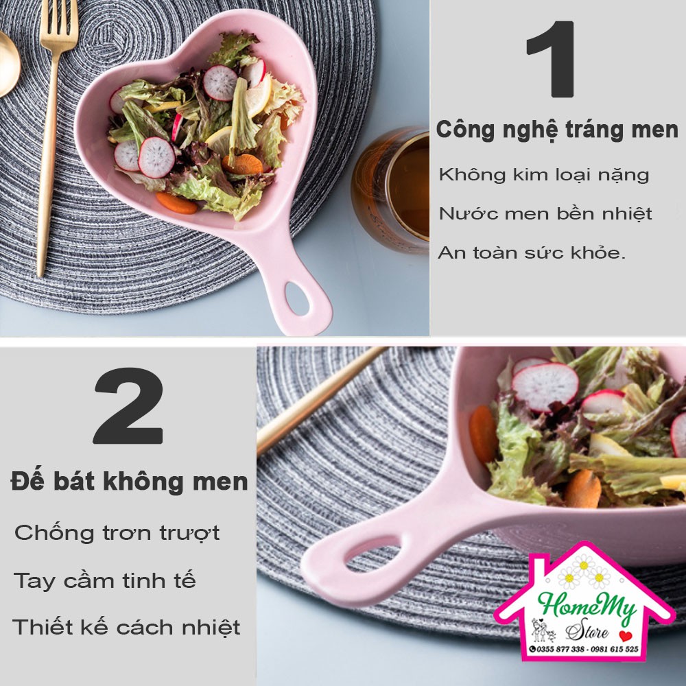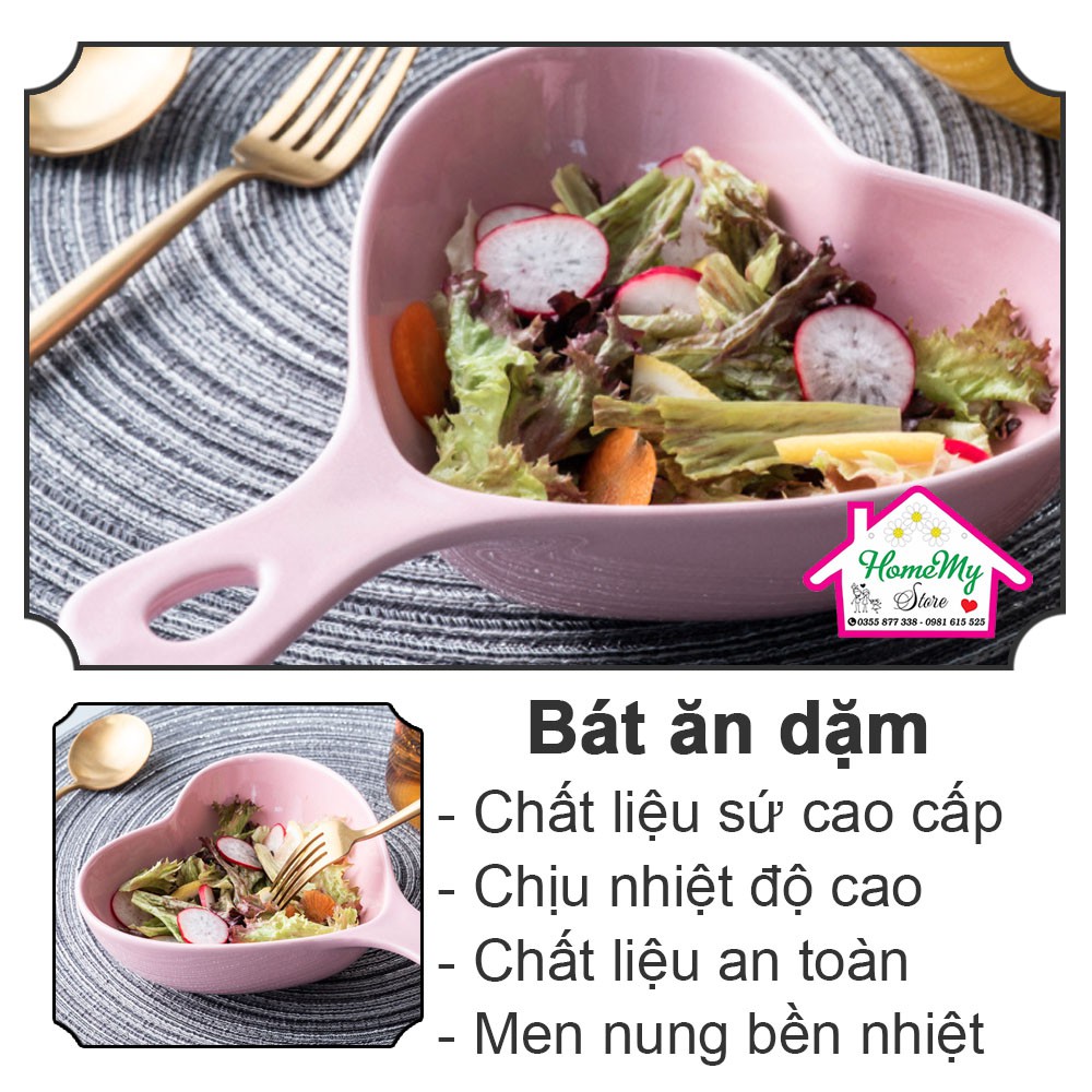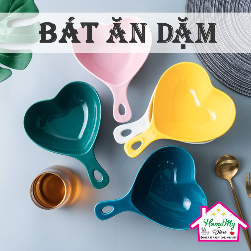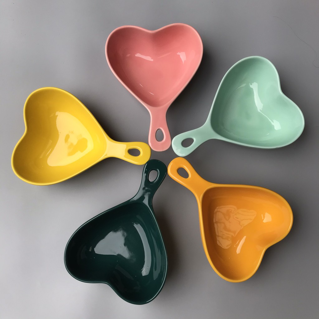 Giới thiệu [5 màu] Bát ăn dặm SALE bát sứ hình tim cho bé có tay cầm chịu nhiệt decor men bóng màu pastel bỏ lò vi sóng