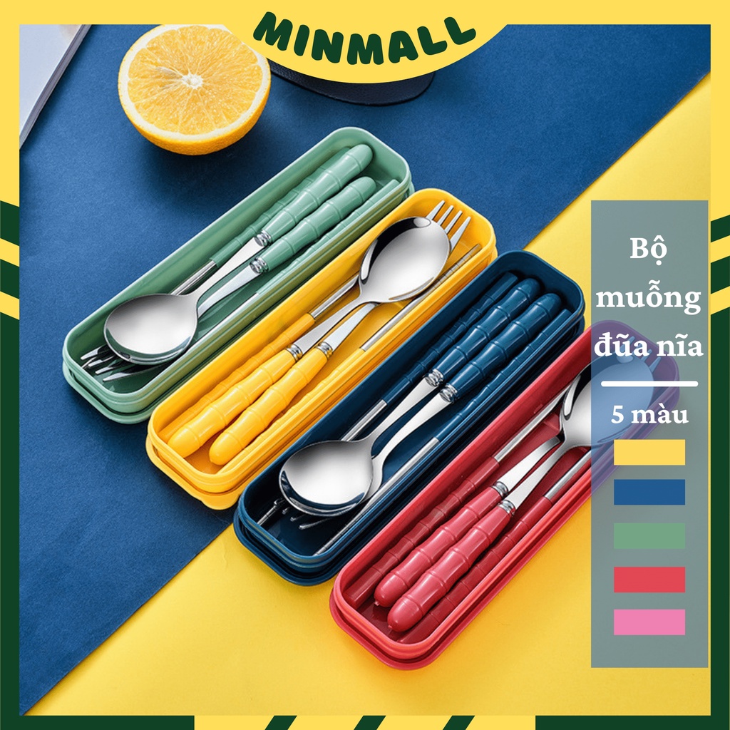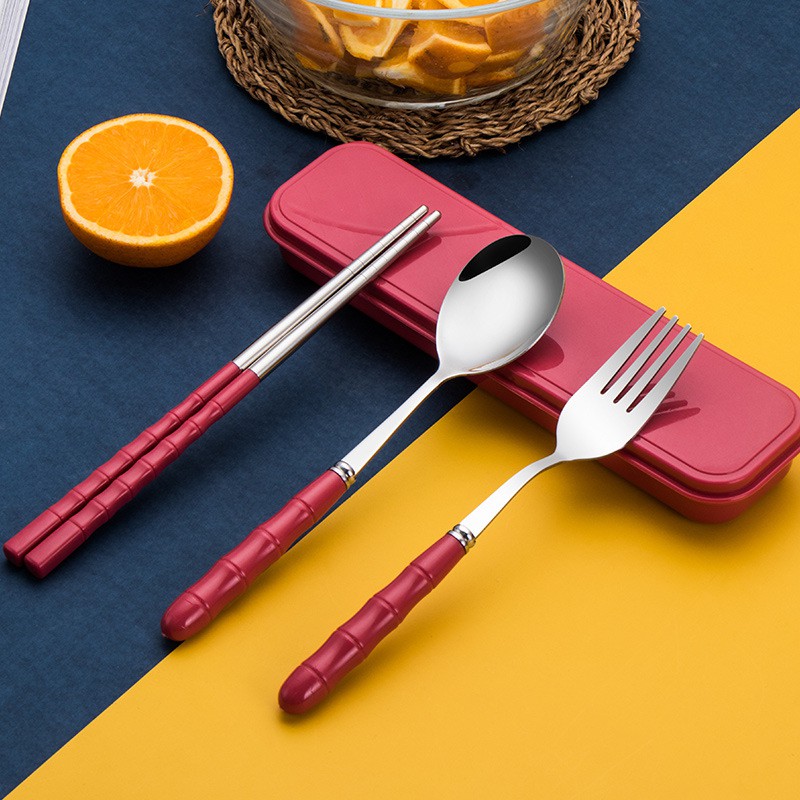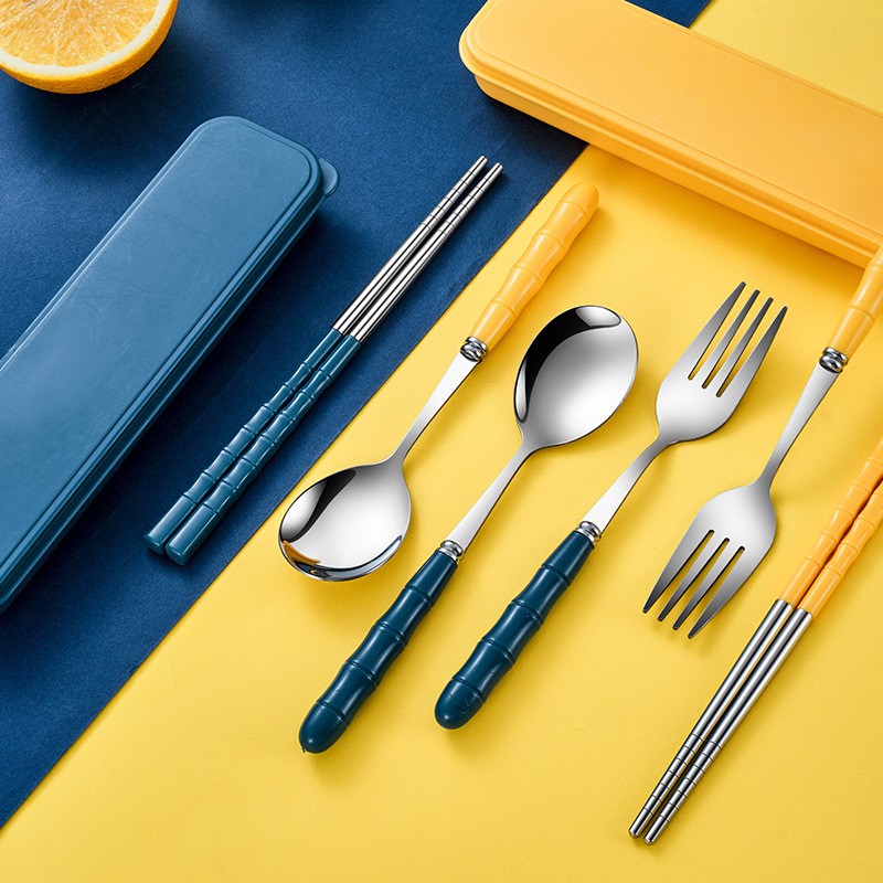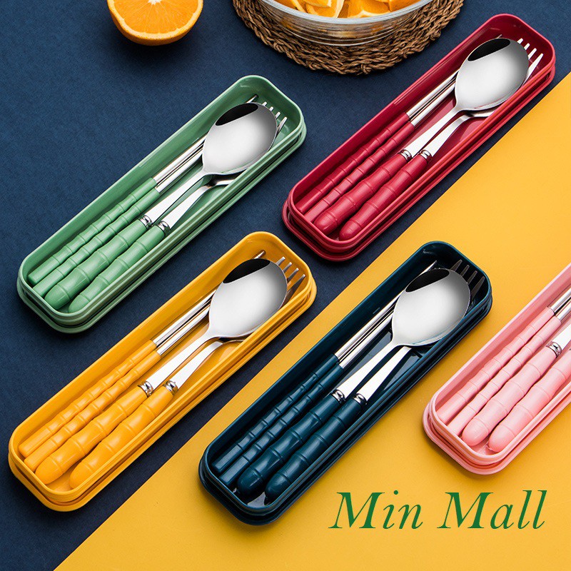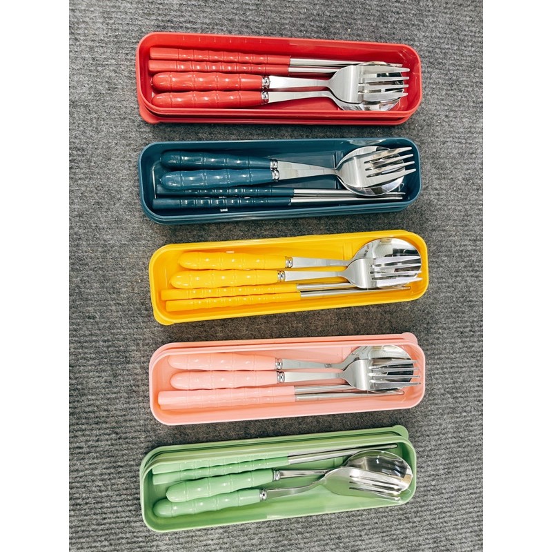 [5 Màu] Bộ Muỗng Đũa Nĩa Inox Ko Gỉ Kèm Hộp Đựng Màu Sắc Dùng Cá Nhân / Cơm Văn Phòng #409 (Màu)