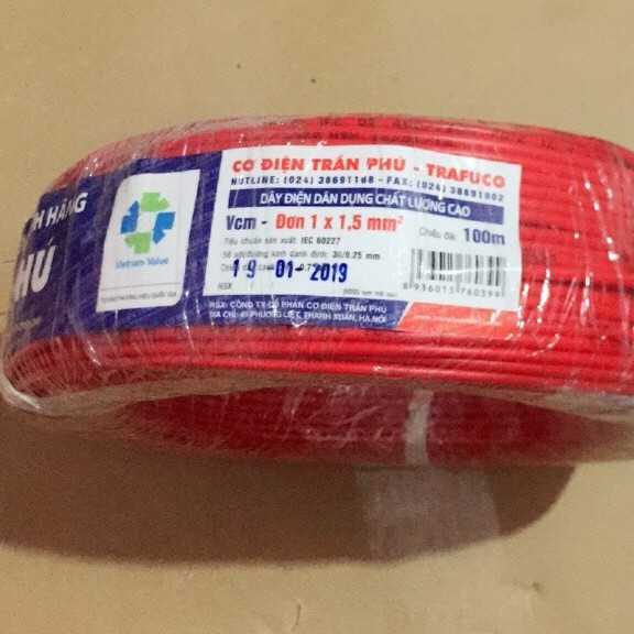 5 mét Dây điện Trần Phú (dây đơn), 25 năm bảo hành, Cam kết chính hãng
