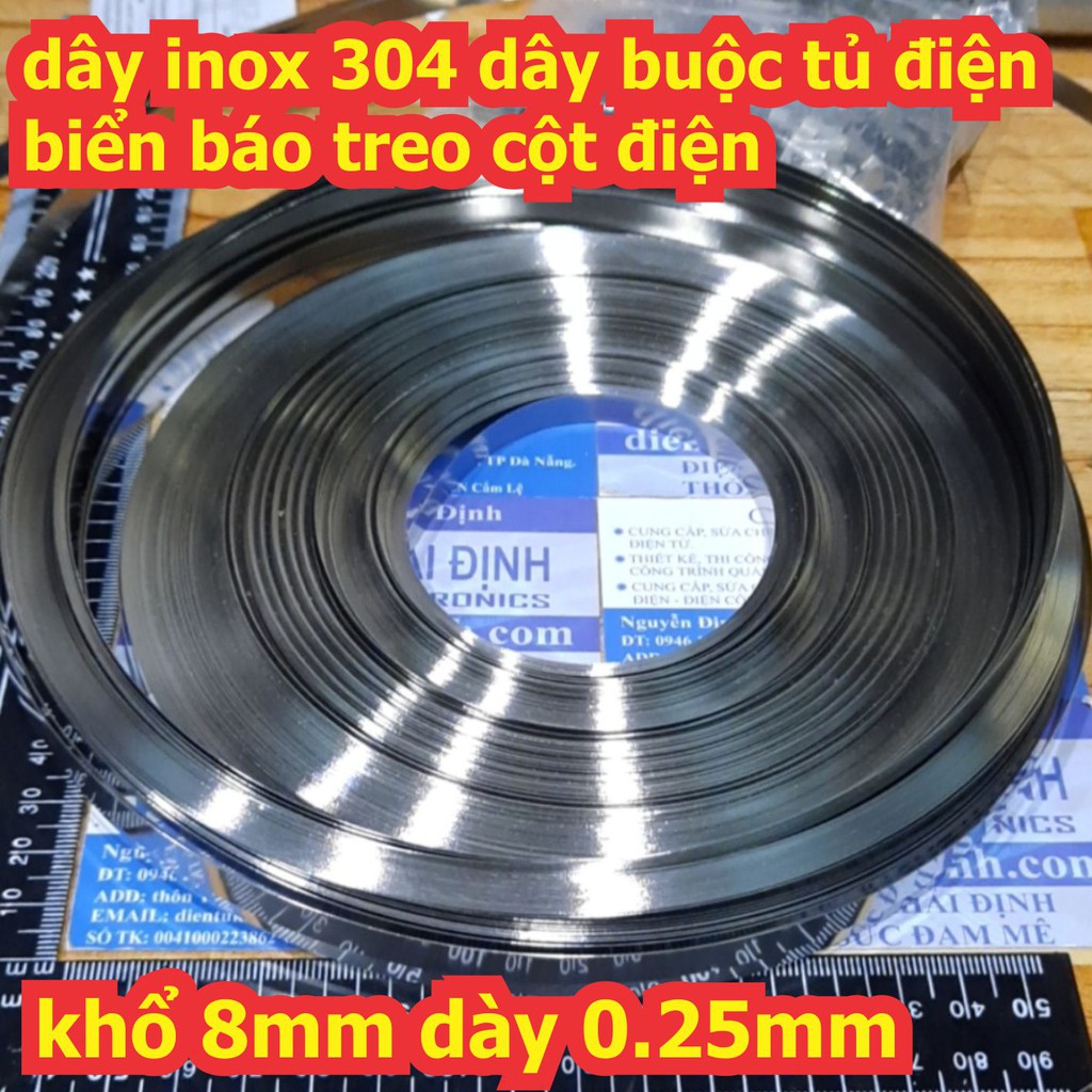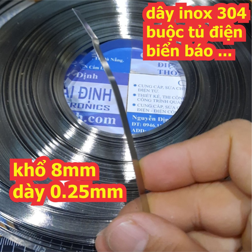 5 mét dây inox 304 dây buộc tủ điện, biển báo treo cột điện khổ 8mm dày 0.25mm (5 mét) kde6533