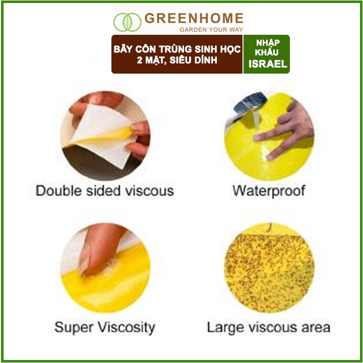 Giới thiệu Bộ 5 miếng Keo bẫy côn trùng sinh học Israel, D22xR18cm, siêu dính 2 mặt, Thân thiện môi trường, tiết kiệm |Greenhome
