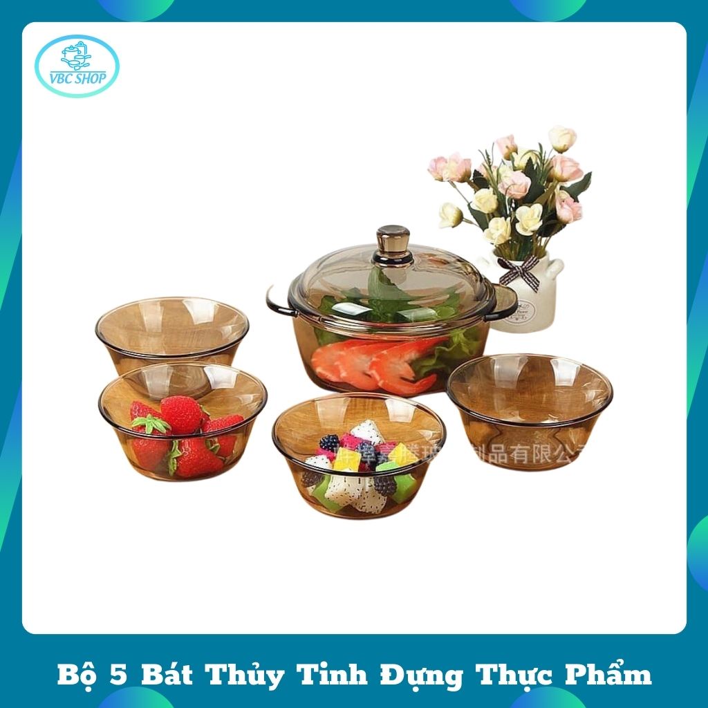 Bộ 5 Món Bát Thủy Tinh Đựng Đồ Thực Phẩm Tiện Dụng, Bộ Bát Đựng Thực Phẩm Đa Năng