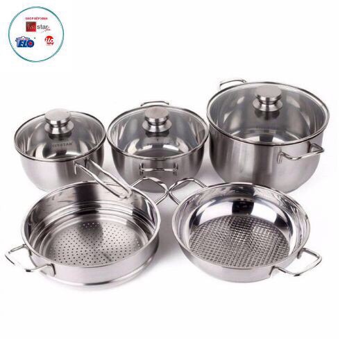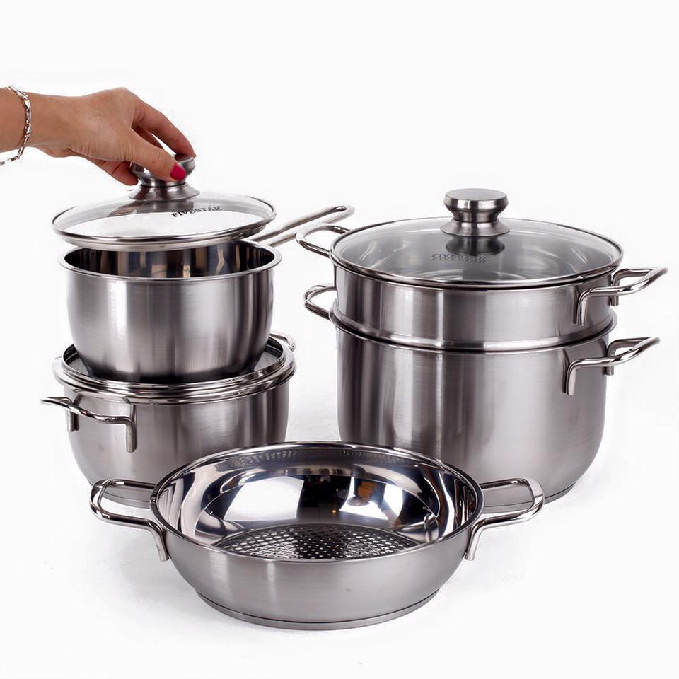- Bộ nồi xửng inox 3 đáy nắp kính FiveStar FS08CG1được thiết kế theo phong cách châu Âu sang trọng giúp công việc nấu nướng dễ dàng, nhanh chóng hơn. Bộ nồi Fivestar bao gồm bộ nồi, xửng hấp, nồi lẩu, chảo không dính... với chất lượng inox cao cấp nhưng giá cả cực kỳ phải chăng là người bạn đồng hành đáng tin cậy cho những người nội trợ Việt.