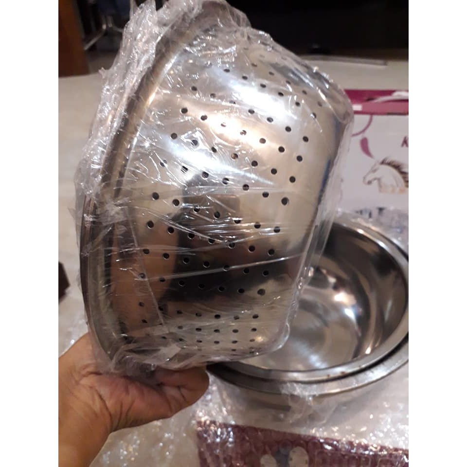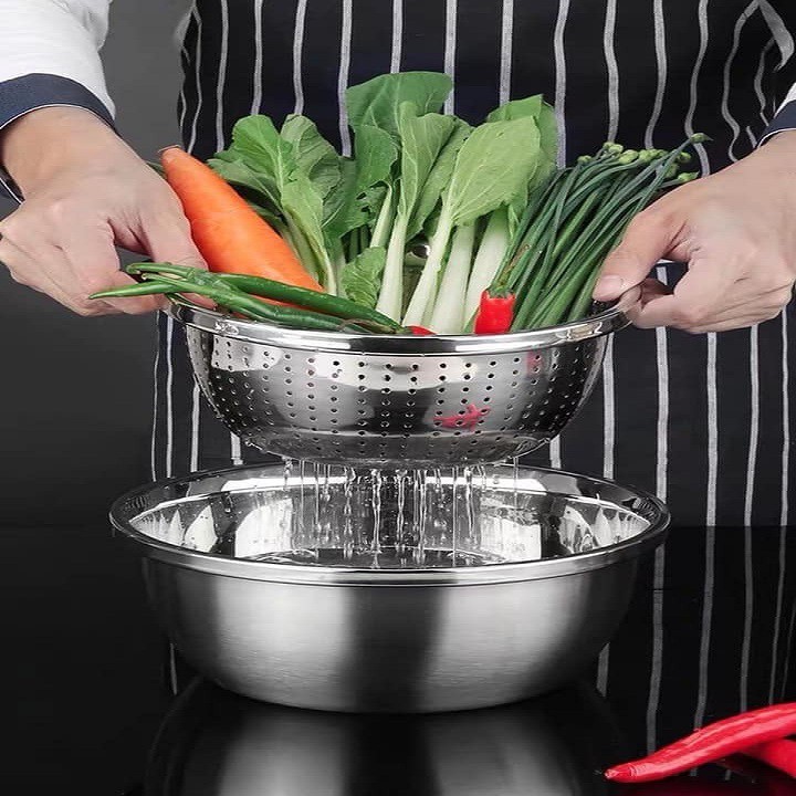 Nhà cửa & Đời sống > Dụng cụ chăm sóc nhà cửa > Chậu, xô & gáo nước || Bộ 5 Món Thau Rổ Inox Tiện Dụng Rửa Rau Củ, Hoa Quả, Thực PhẩmCòn hàng