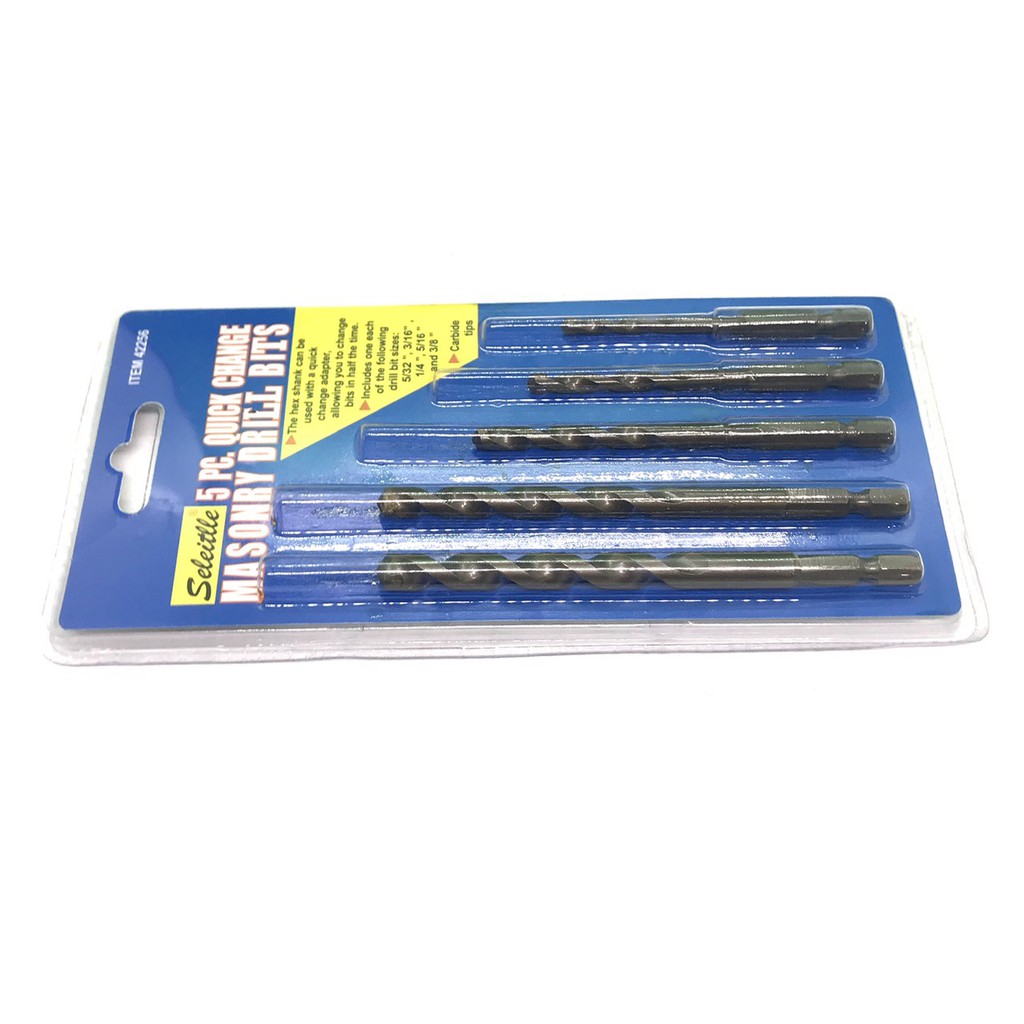 - Bộ 5 mũi khoan bê tông 4 - 10mm có Chuôi lục giác 6.35mm tiện lợi,phù hợp dùng cho máy bắt vít, máy khoan pin, máy khoan đầu cặp,...