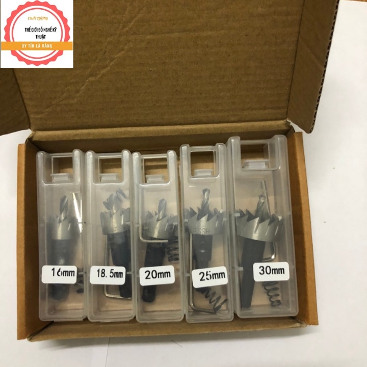 Bộ 5 mũi khoan khoét lỗ sắt nhôm nhựa hợp kim HSS 16-18,5-20-25-30mm