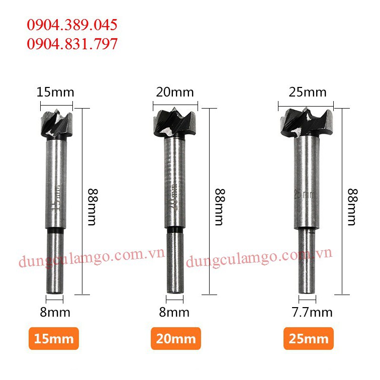 + Kích Thước 5 mũi khoét theo thứ tự : 16 - 19 - 22 - 25 - 35