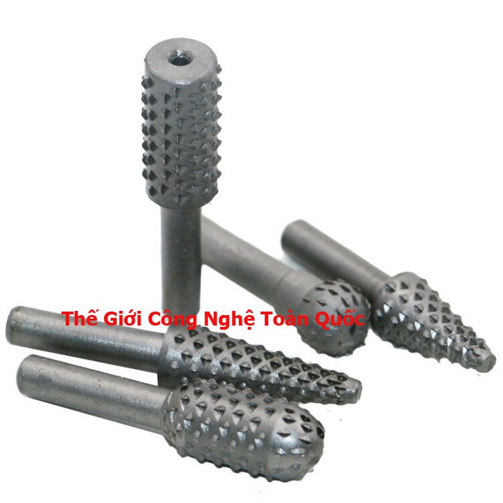 Bộ 5 mũi phay mài cắt gỗ đa năngChất liệu: Thép cacbon cứng, độ bền caoBộ bao gồm 5 mũi hình dạng : hình tròn, hình bầu dục, hình trụ, hình nón nhỏ và lớn