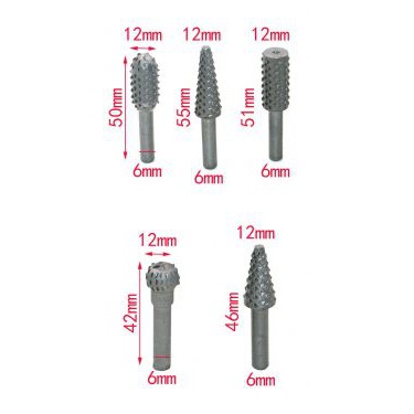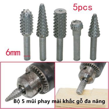 Bộ 5 mũi phay mài cắt gỗ đa năngChất liệu: Thép cacbon cứng, độ bền cao