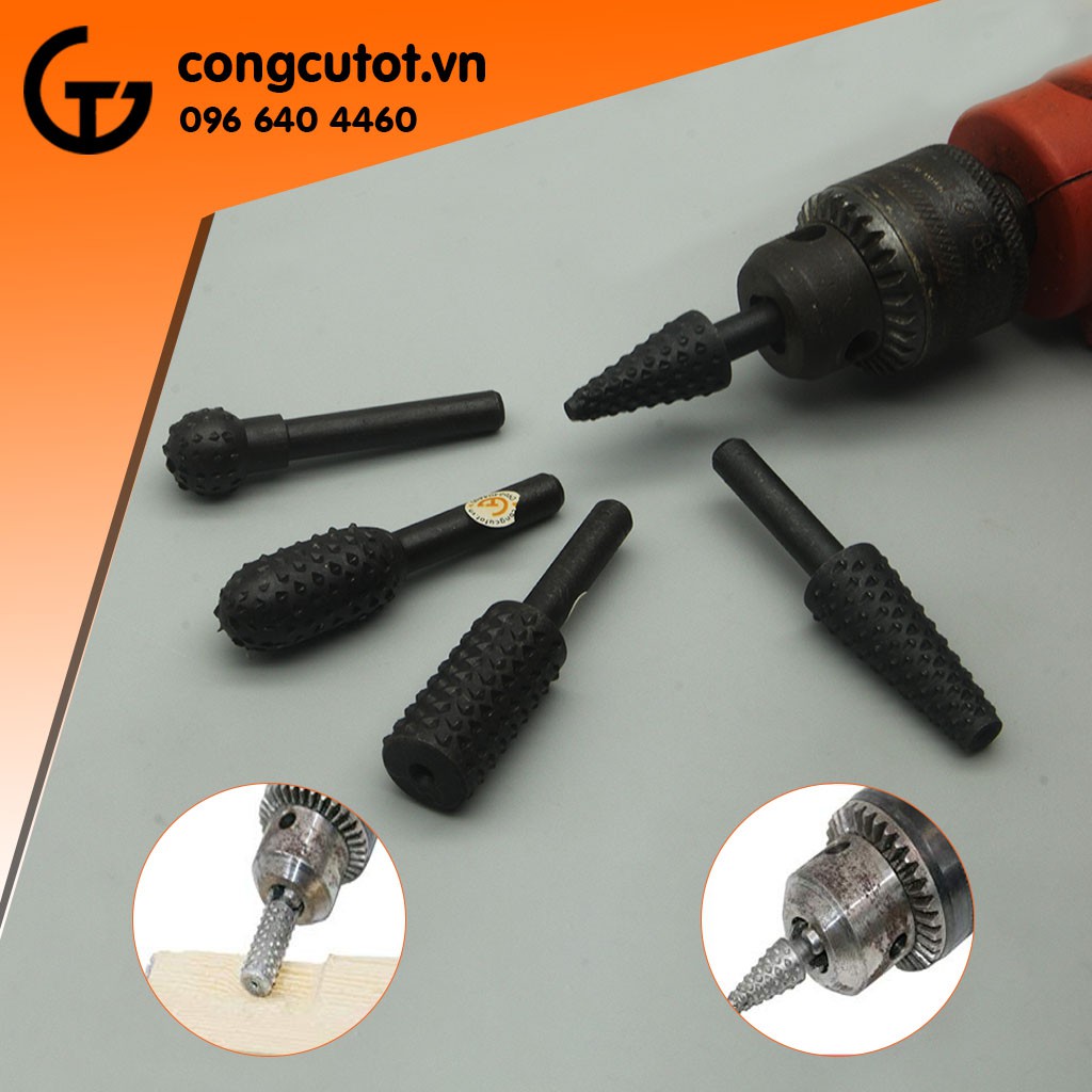 Bộ 5 mũi mài quay gỗ thép 45 trục 6 ly vỉ nhựa là sản phẩm cần thiết đối với những người thợ thủ công, thợ mộc giúp mài khắc, phay gỗ và một số vật liệu mềm một cách nhanh chóng với nhiều hình dạng khác nhau, đạt độ chính xác cao và hơn thế nữa giúp tiết kiệm một cách tối đa thời gian so với những cách làm thủ côngBộ 5 mũi mài, phay gỗ chuyên dụng với nhiều hình dáng, kích thước mũi khác nhau với đường kính 6.3mm (1/4inch) được chế tạo từ thép 45 cao cấp, bề mặt được phủ bóng giúp tăng độ bền cho mũi mài. Sản phẩm là một sự lựa chọn hoàn hảo cho những người thợ làm mộc đặc biệt là làm gỗ công nghiệp hay một số vật liệu mềm giúp khoét lỗ, mài khắc, chạm trổ, đánh bóng gỗ với độ chính xác gần như tuyệt đối.