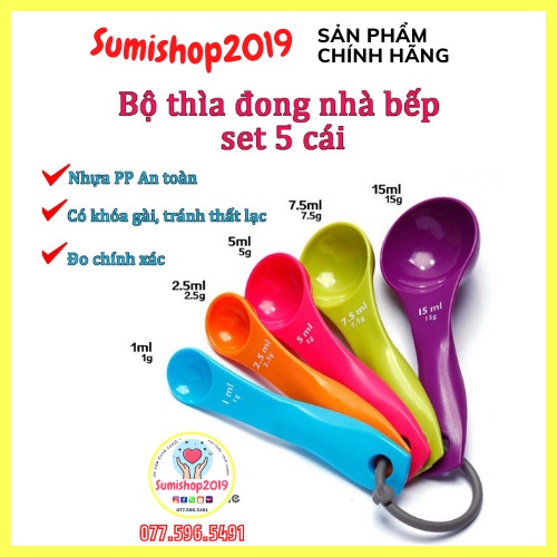Bộ 5 muỗng đo lường nhiều màu sắc tiện dụng an toàn