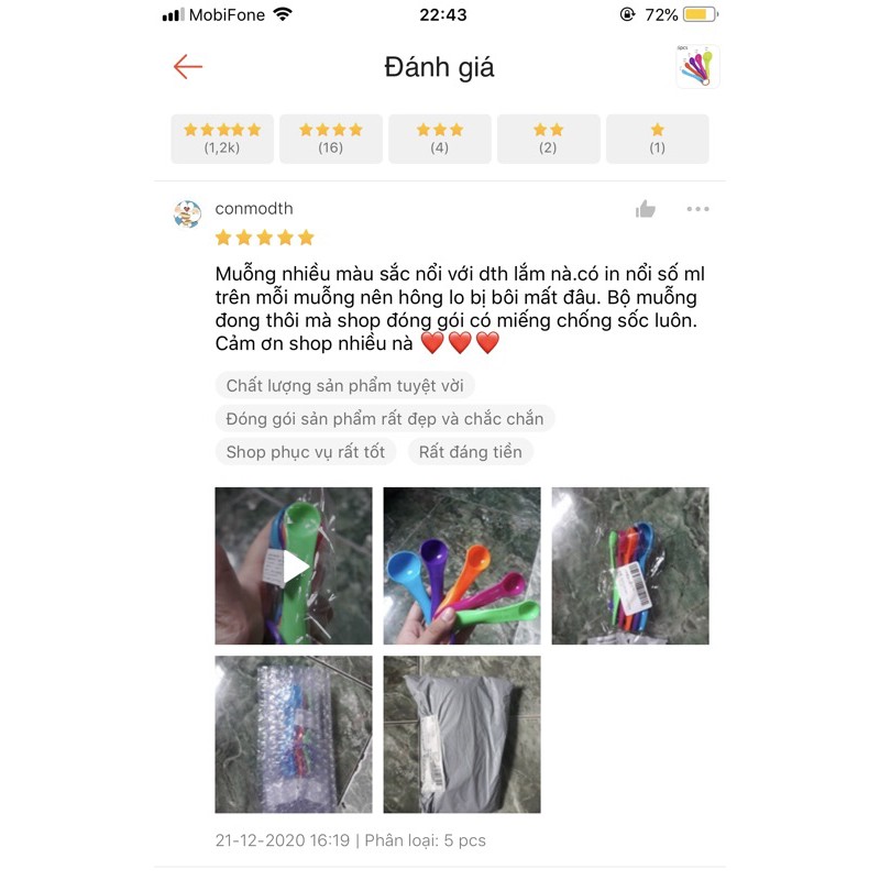 Gói hàng bao gồm: 5 chiếc muỗng đo lường nhiều màu sắc