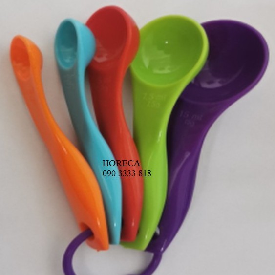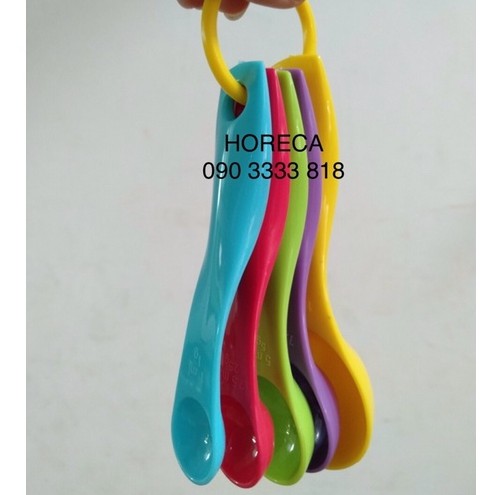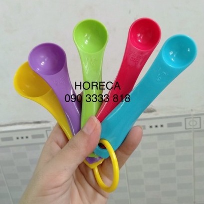 - Bộ muỗng đong gồm 5 muỗng (thìa) nhựa, có 5 màu