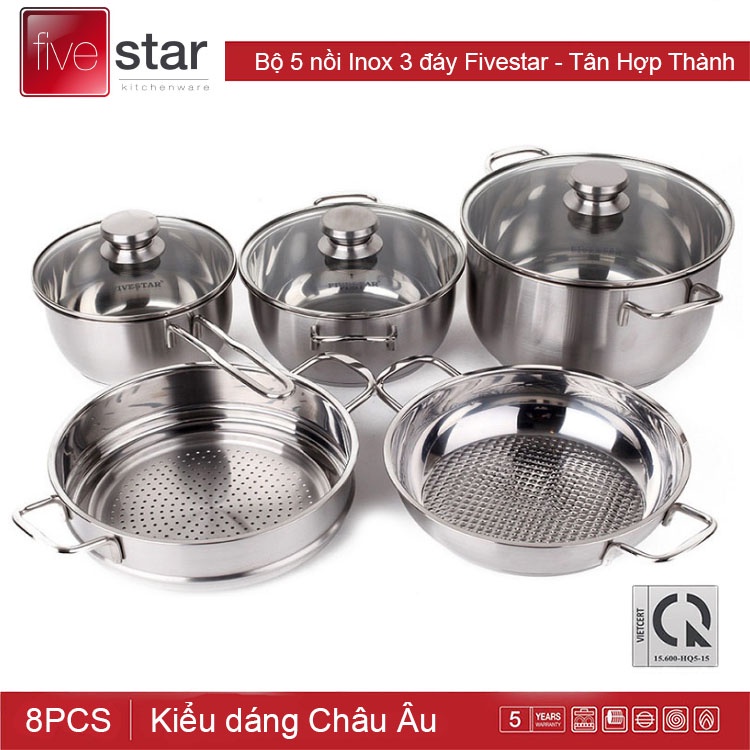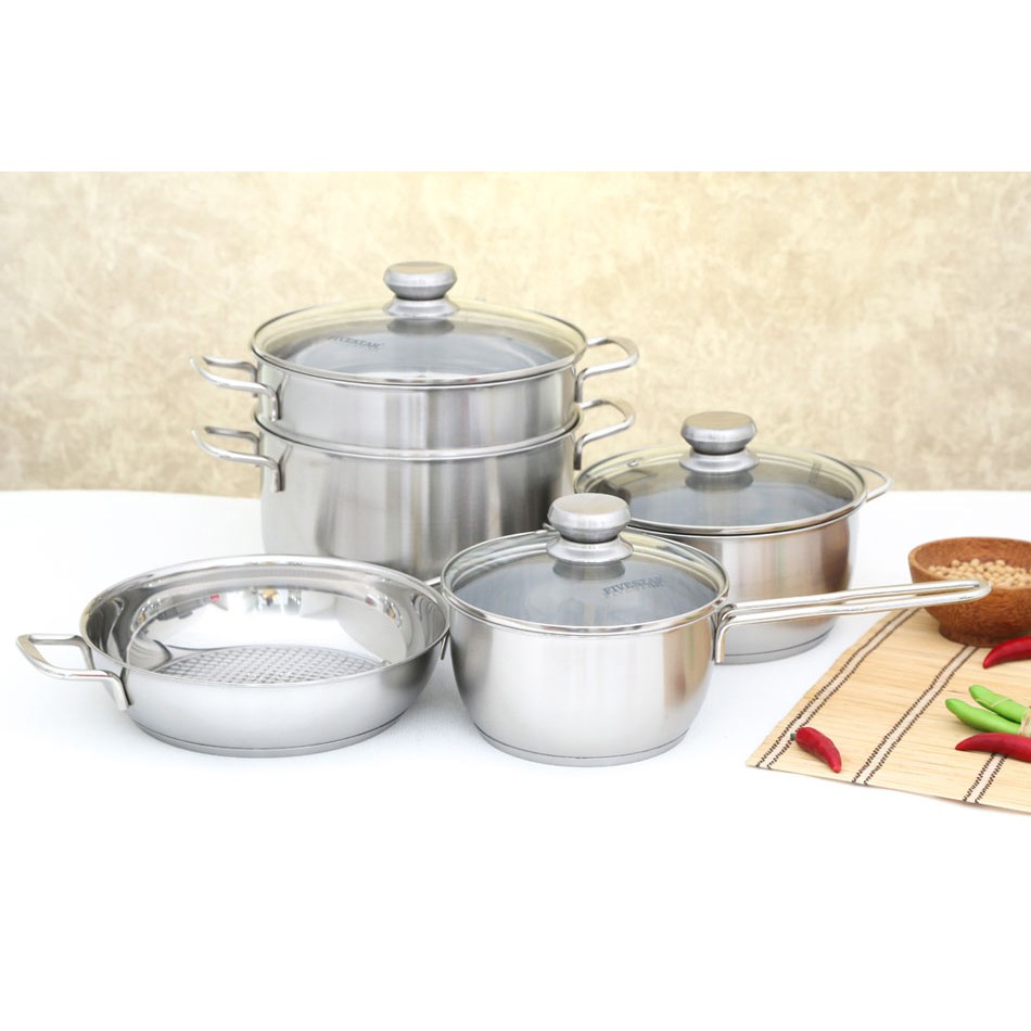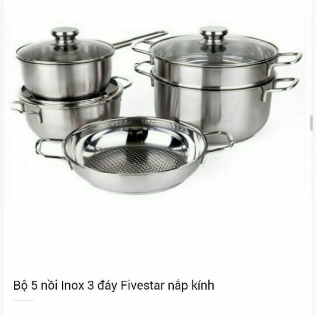 Nhà cửa & Đời sống > Dụng cụ nhà bếp > Nồi || Bộ 5 nồi chảo Inox 3 đáy Fivestar nắp kính dùng bếp từCòn hàng