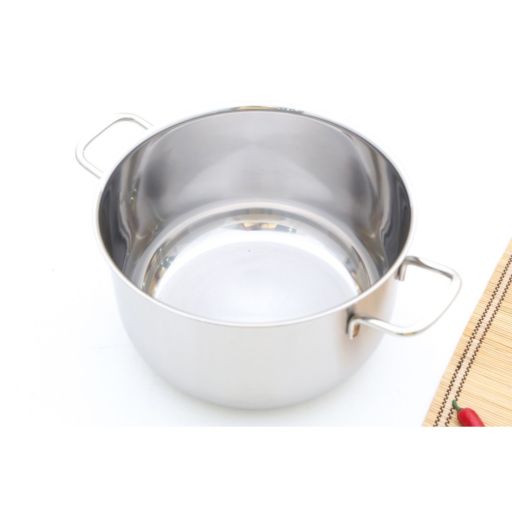 Đáy nồi có kết cấu 3 lớp: inox 430 - nhôm đúc - inox 430, giúp thu nhiệt nhanh, tỏa nhiệt đều, tiết kiệm năng lưọng và chống khét.